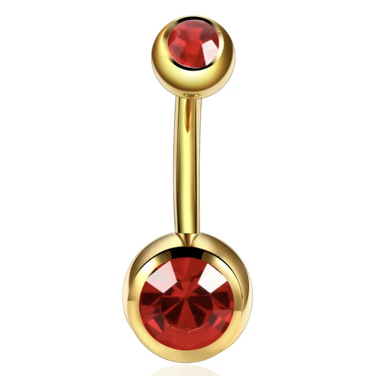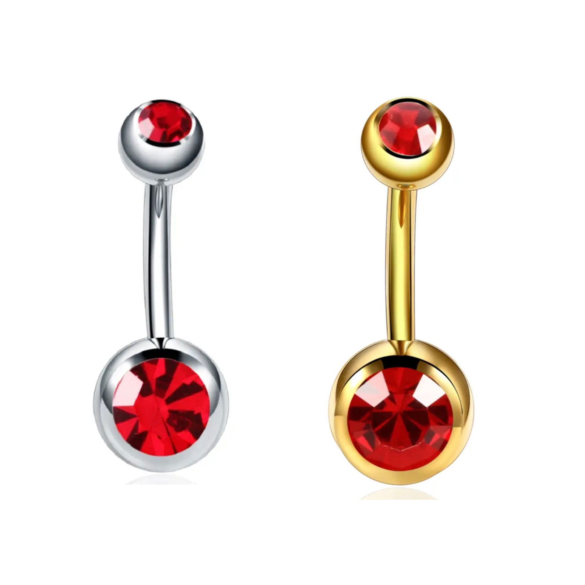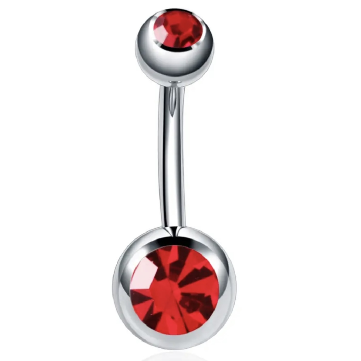Linda joyería en acero quirúrgico modelo clásico de dos bolas adornado con piedras en color Rojo Candy
