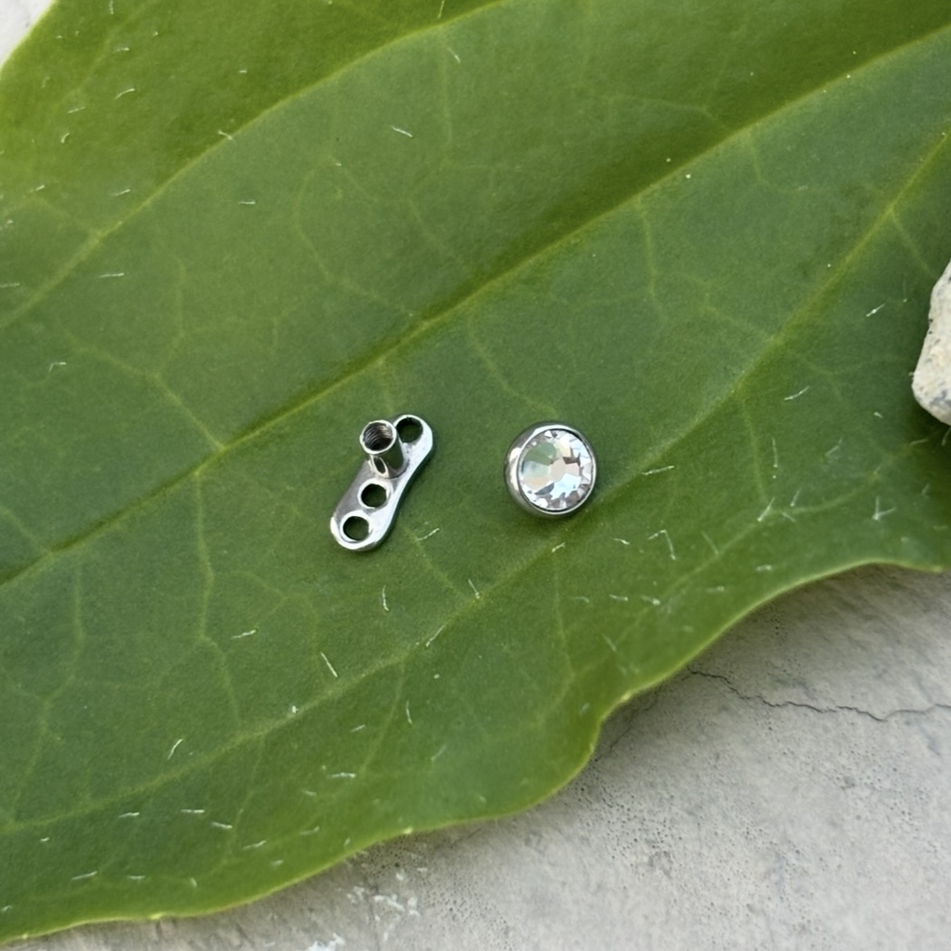 Microdermal con piedra transparente 4 mm – Acero quirúrgico plateado