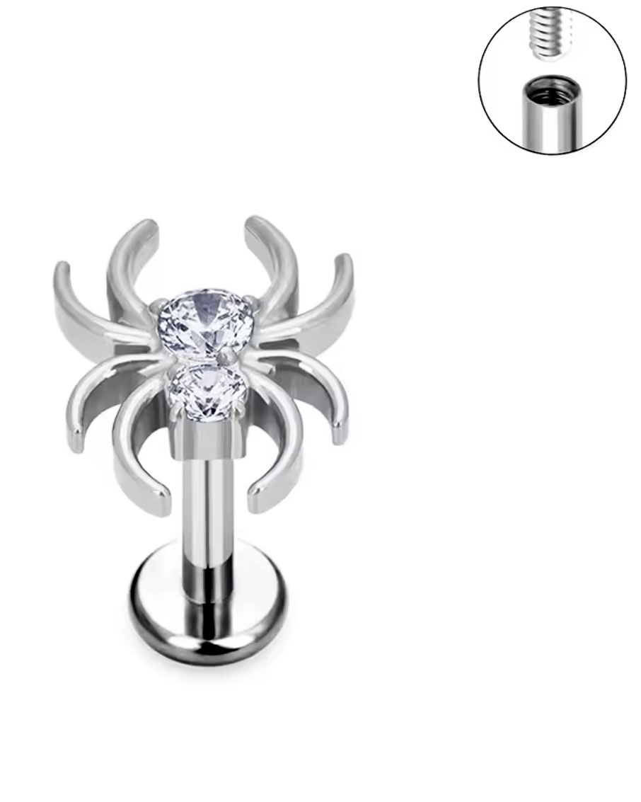 y se ve increíble!Piercing hermosísimo Piercing con una linda figura de araña spider con dos hermosas zirconias redondas color clear de la mejor calidad que te encantarán es un diseño de joya que por nada puedes dejar pasar top 16g