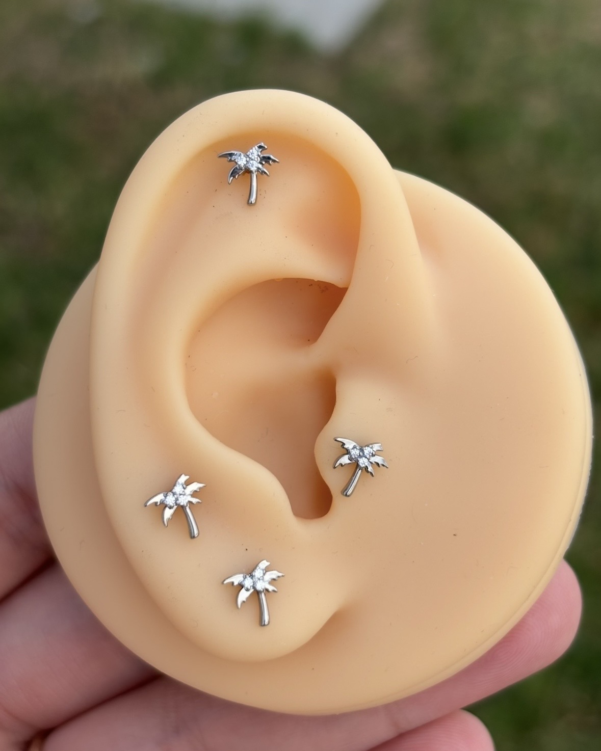 y se ve increíble!Piercing hermosísimo Piercing con una linda figura de Palma Palmera con una hermosa zirconias redonda color clear de la mejor calidad que te encantarán es un diseño de joya que por nada puedes dejar pasar top 16g