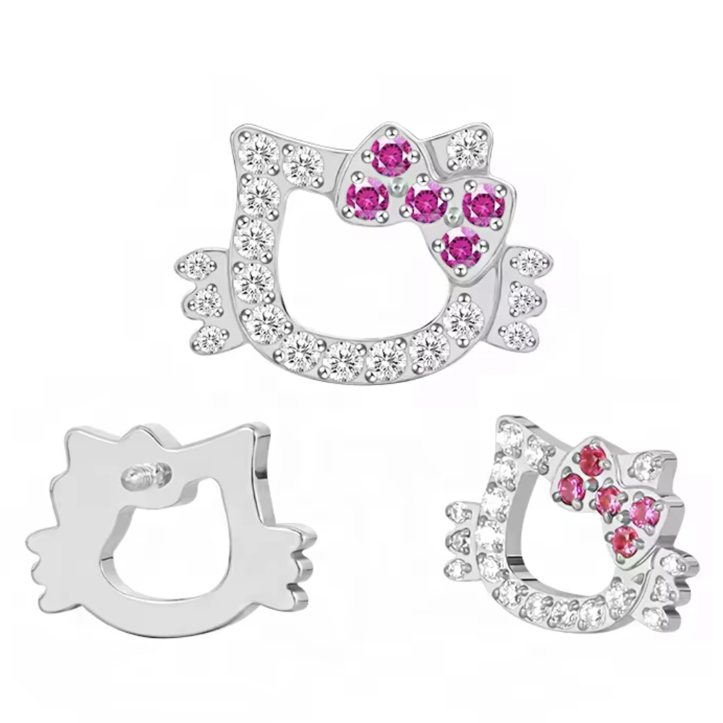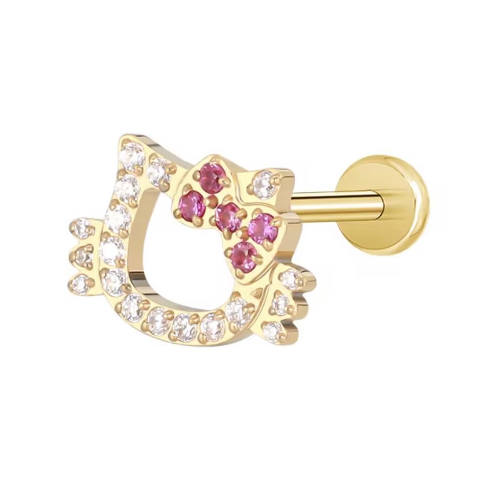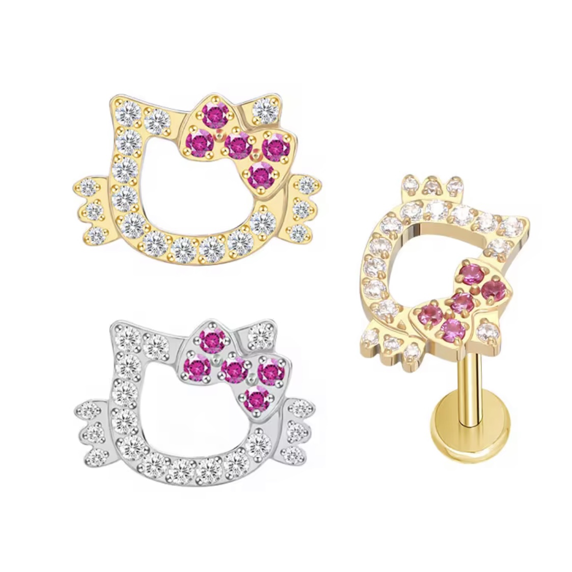 Un lindo piercing de Hello Kitty blanco con piedras en titanio luce increíble para varios piercing
