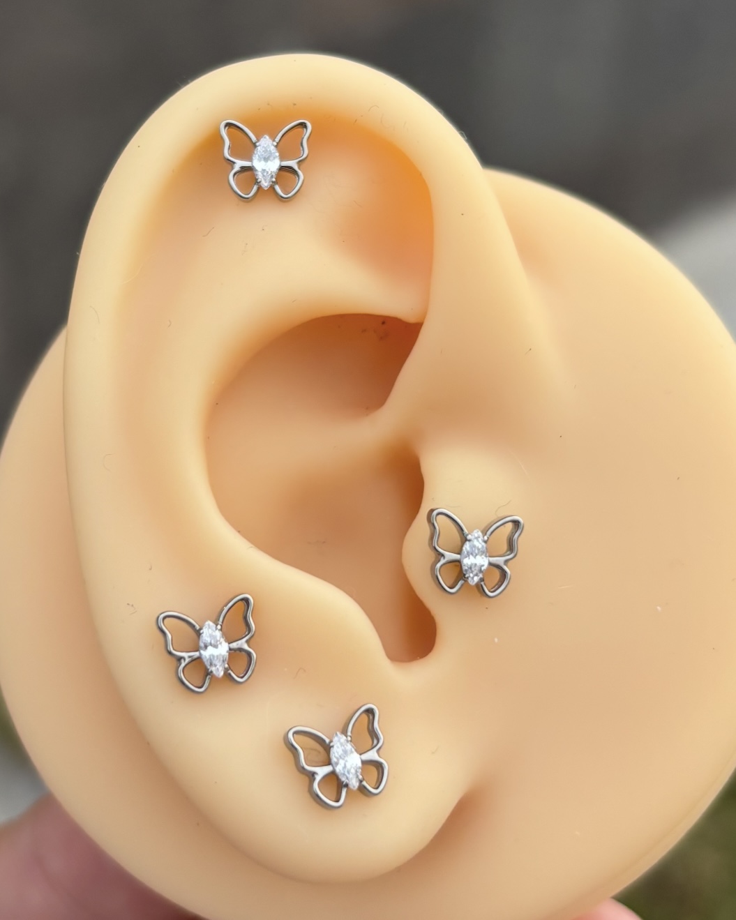 y se ve increíble!Piercing hermosísimo Piercing con una linda figura de mariposa en líneas con una linda zirconia marquise central color clear de la mejor calidad que te encantarán es un diseño de joya que por nada puedes dejar pasar top 16g
