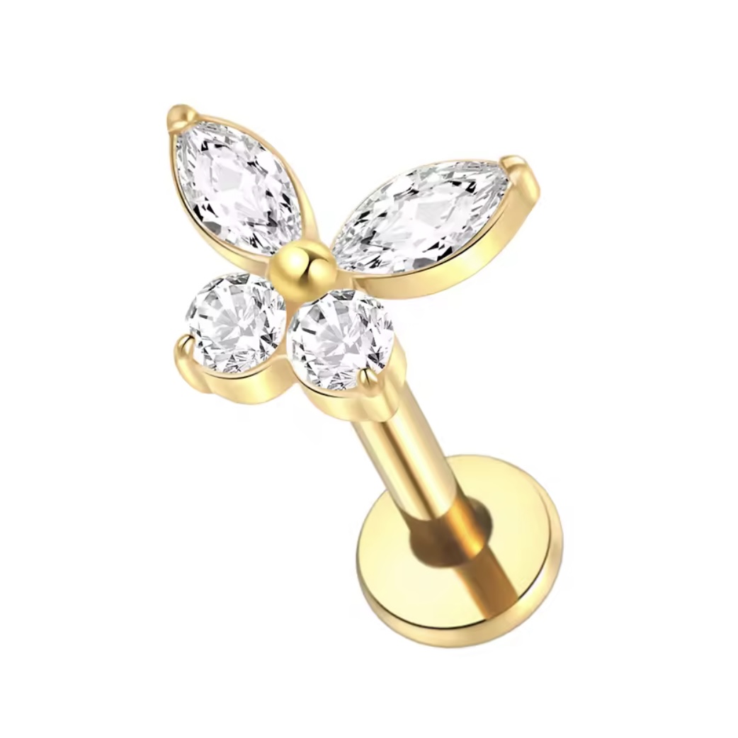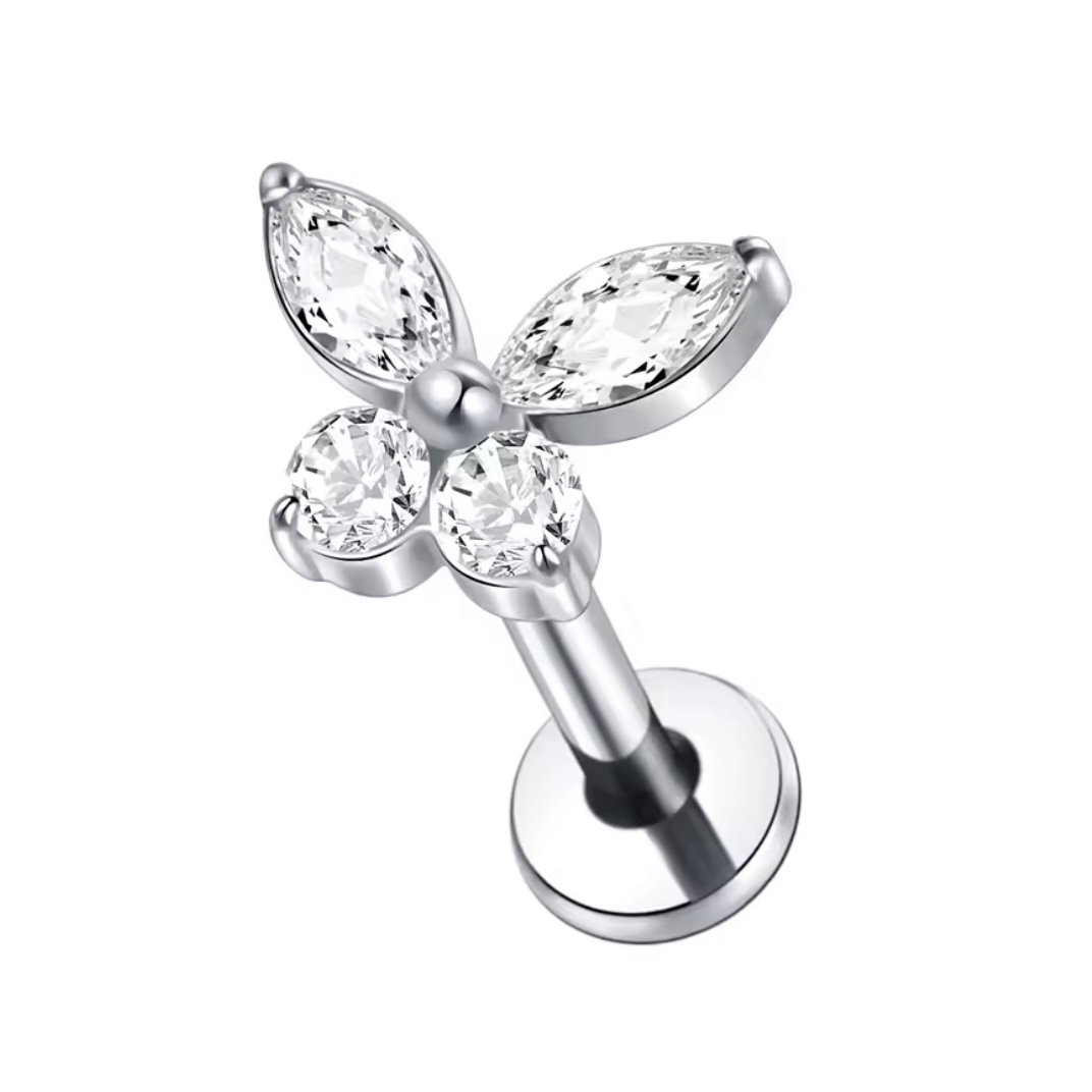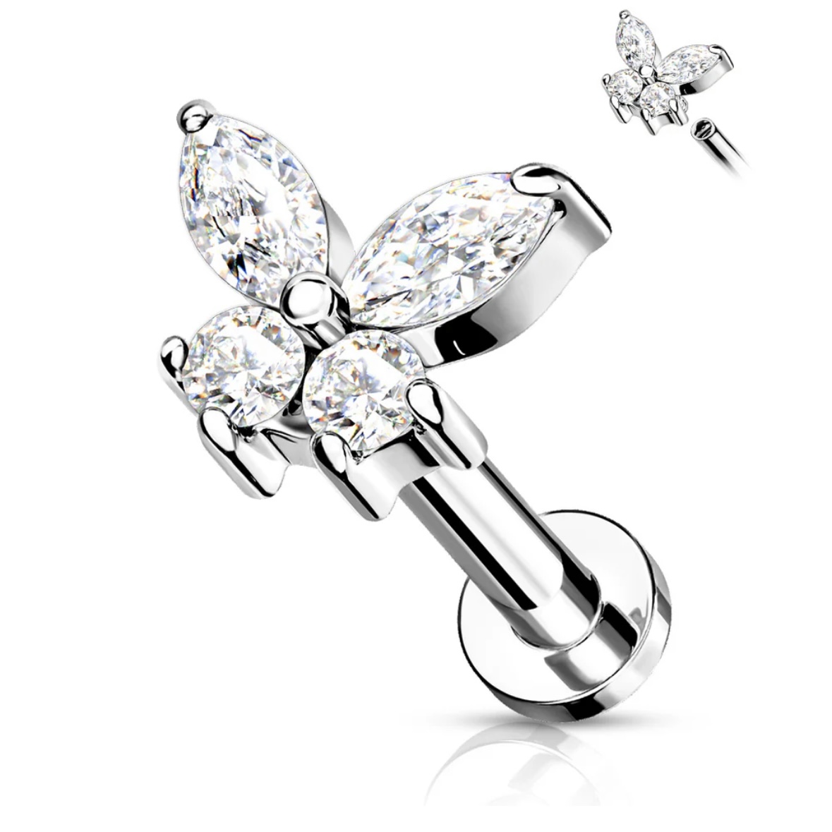 Un lindo piercing de mariposita en titanio luce increíble para varios piercing