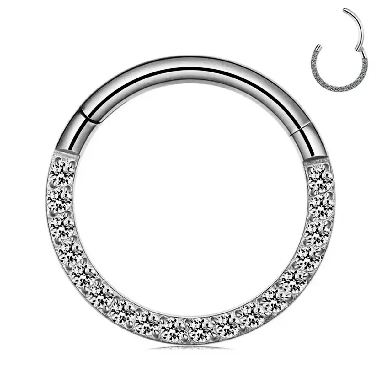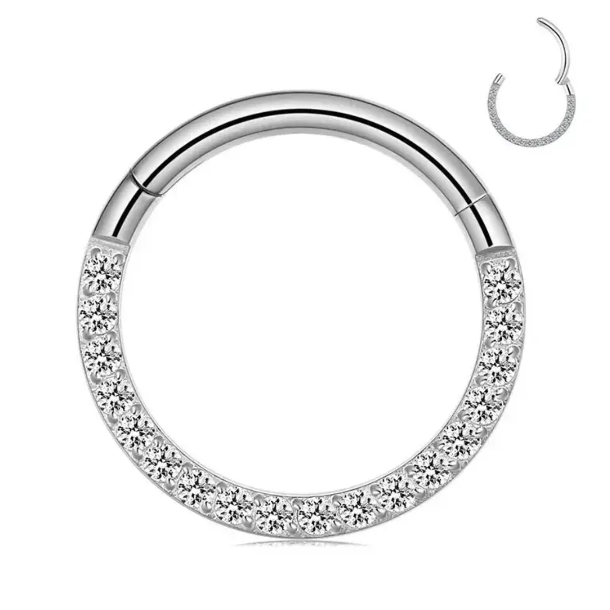 y se ve increíble!Aro infinito con bellas zirconias transparente que lucen espectacular, este modelo es un clásico en las perforaciones, luce tan increible algo sencillo brillante